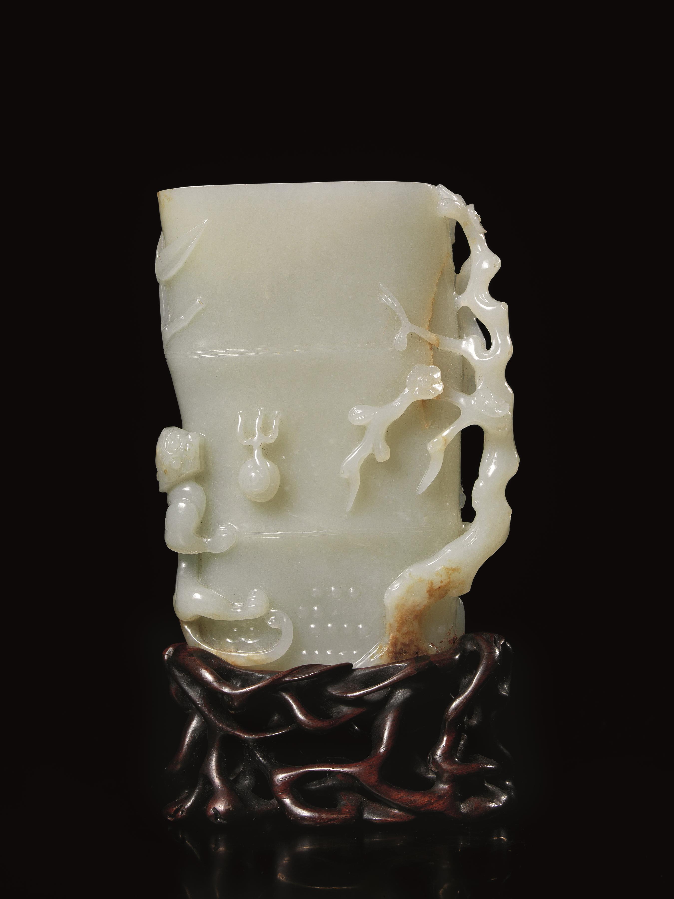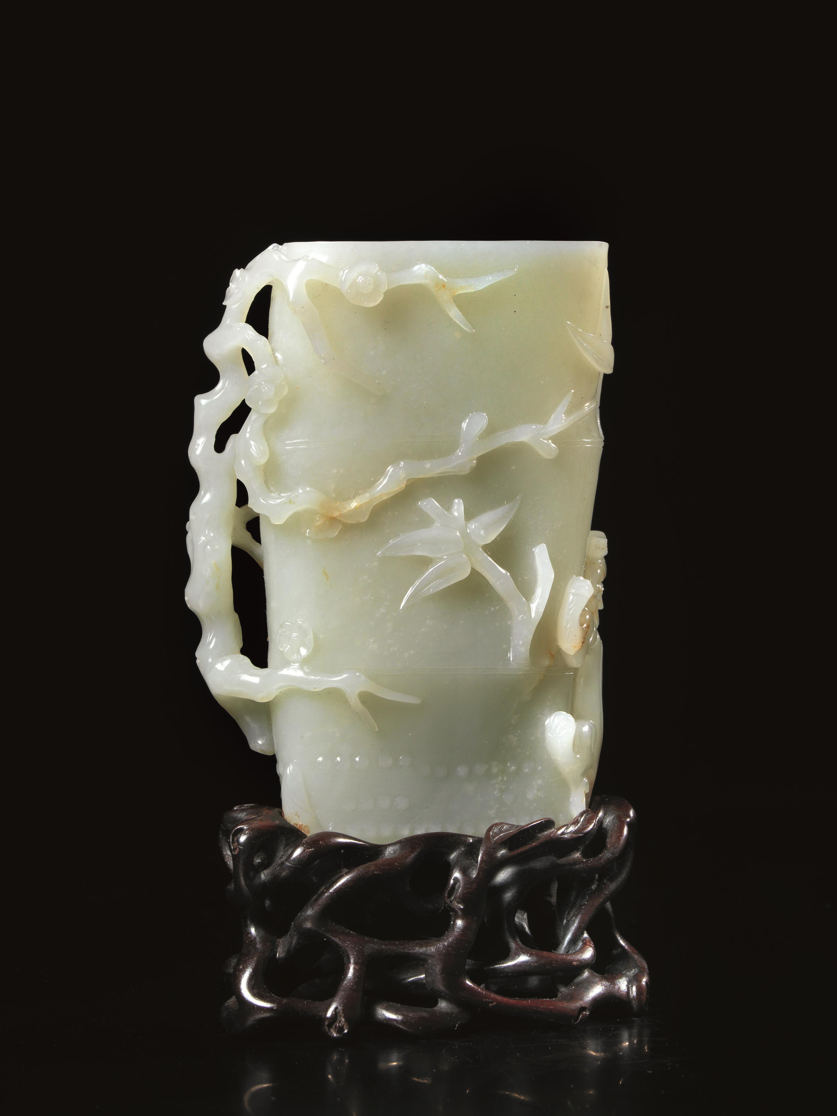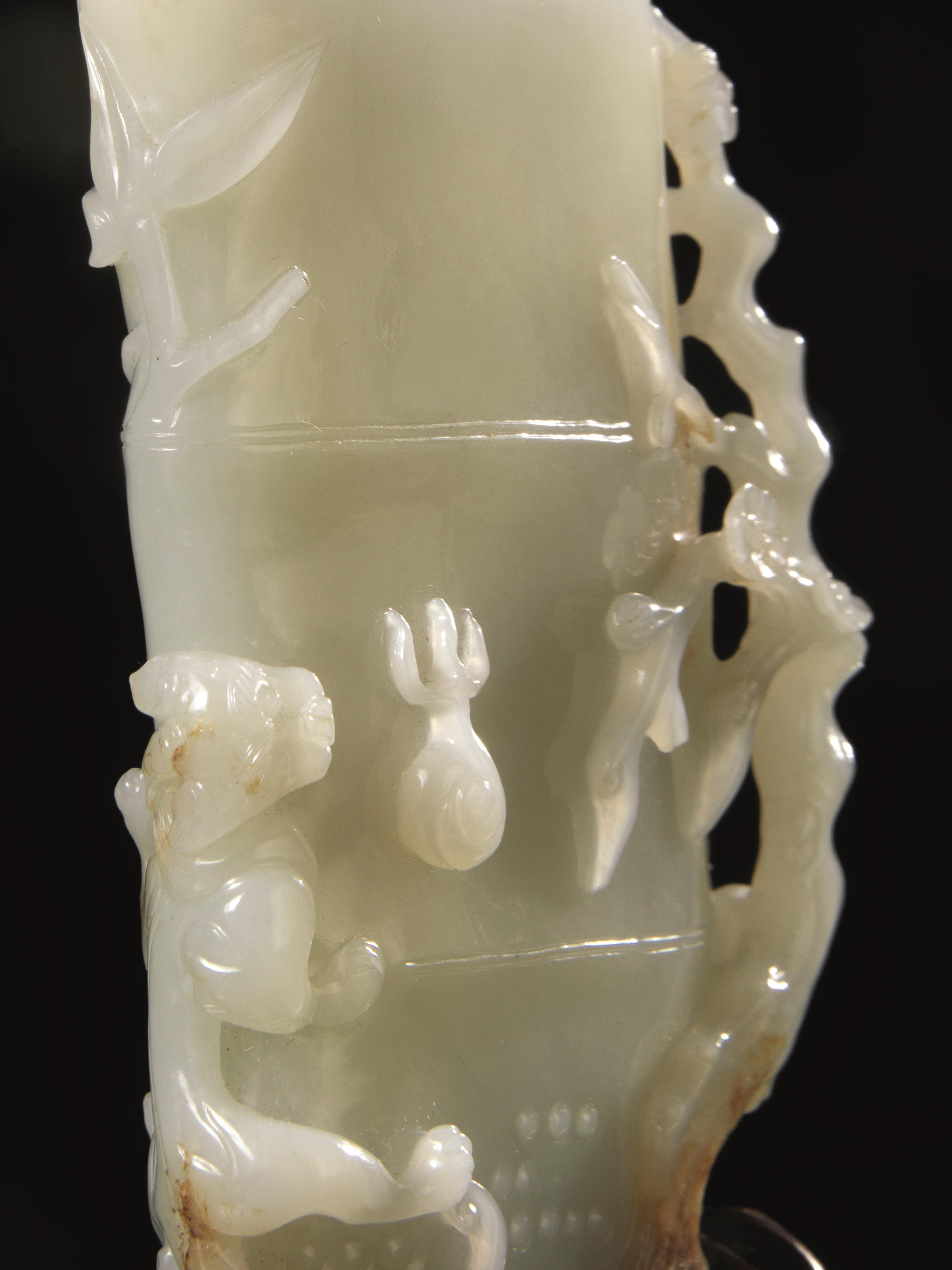 VASO, CINA, TARDA DINASTIA QING in giada bianca traslucida, modellato nella...