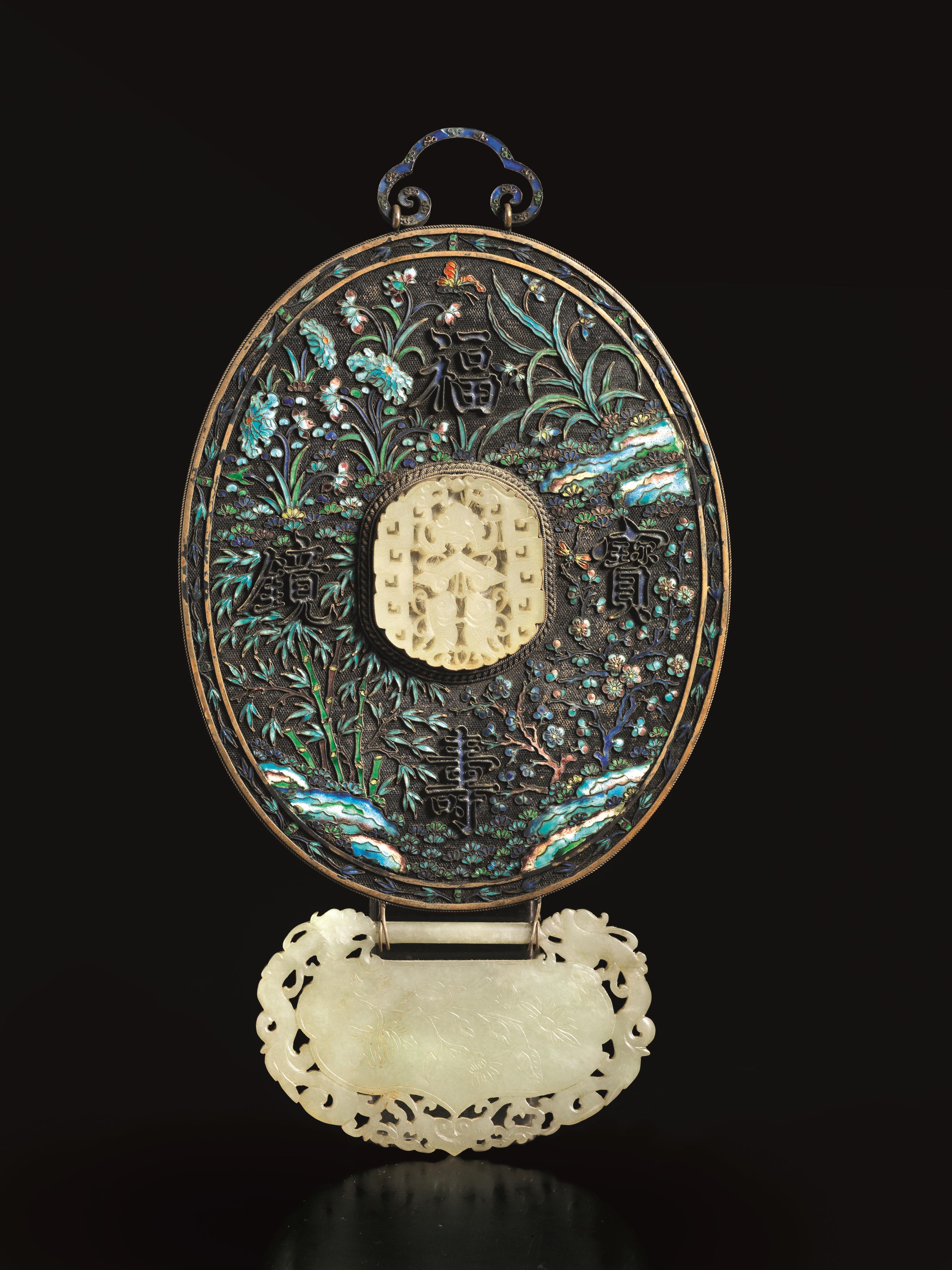 An enamel mirrow with jade plaques , China , 19th-20th century