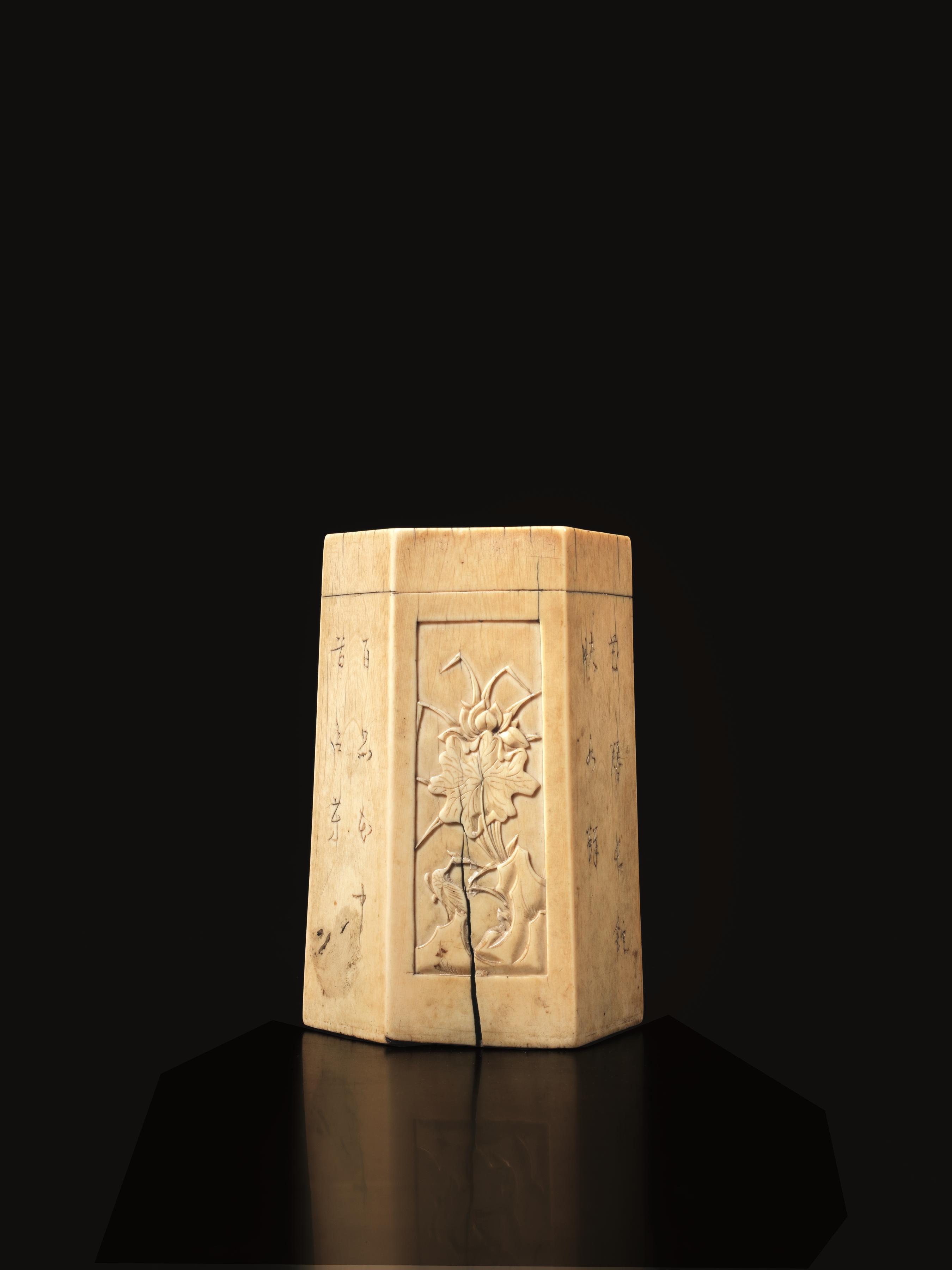 PORTA PENNELLI, CINA, TARDA DINASTIA MING in avorio di forma esagonale,...