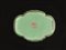 in porcellana policroma della famiglia rosa a fondo “lime green”, di forma quadrilobata con bordo dorato, decorato con quattro fiori di loto collegati da ramages e festoni, al centro una corolla di fiore stilizzato con la svastica, marchio Qianlong, cm 15,5x11