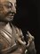 in bronzo con tracce di doratura, raffigurante Lama assiso in dhyanasana su doppia base a fior di loto in dharmachakramudra, le vesti finemente cesellate con fiori e motivi geometrici, alt. cm 32