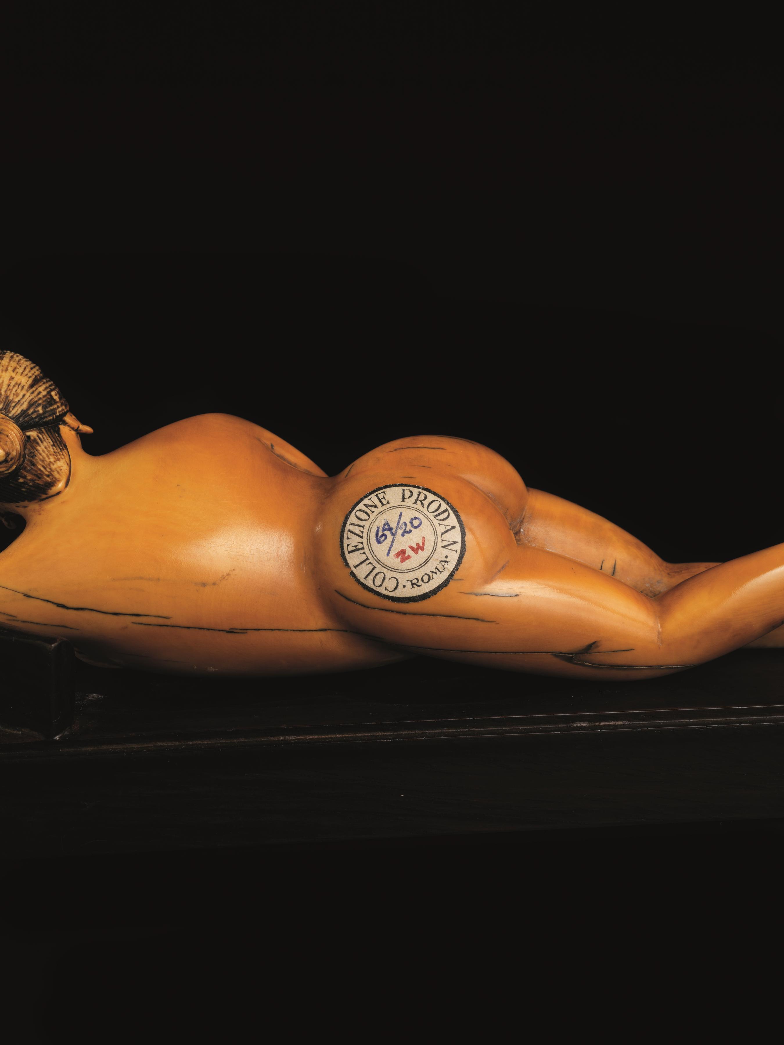 in avorio, raffigurante nudo femminile disteso, lung. cm 21
