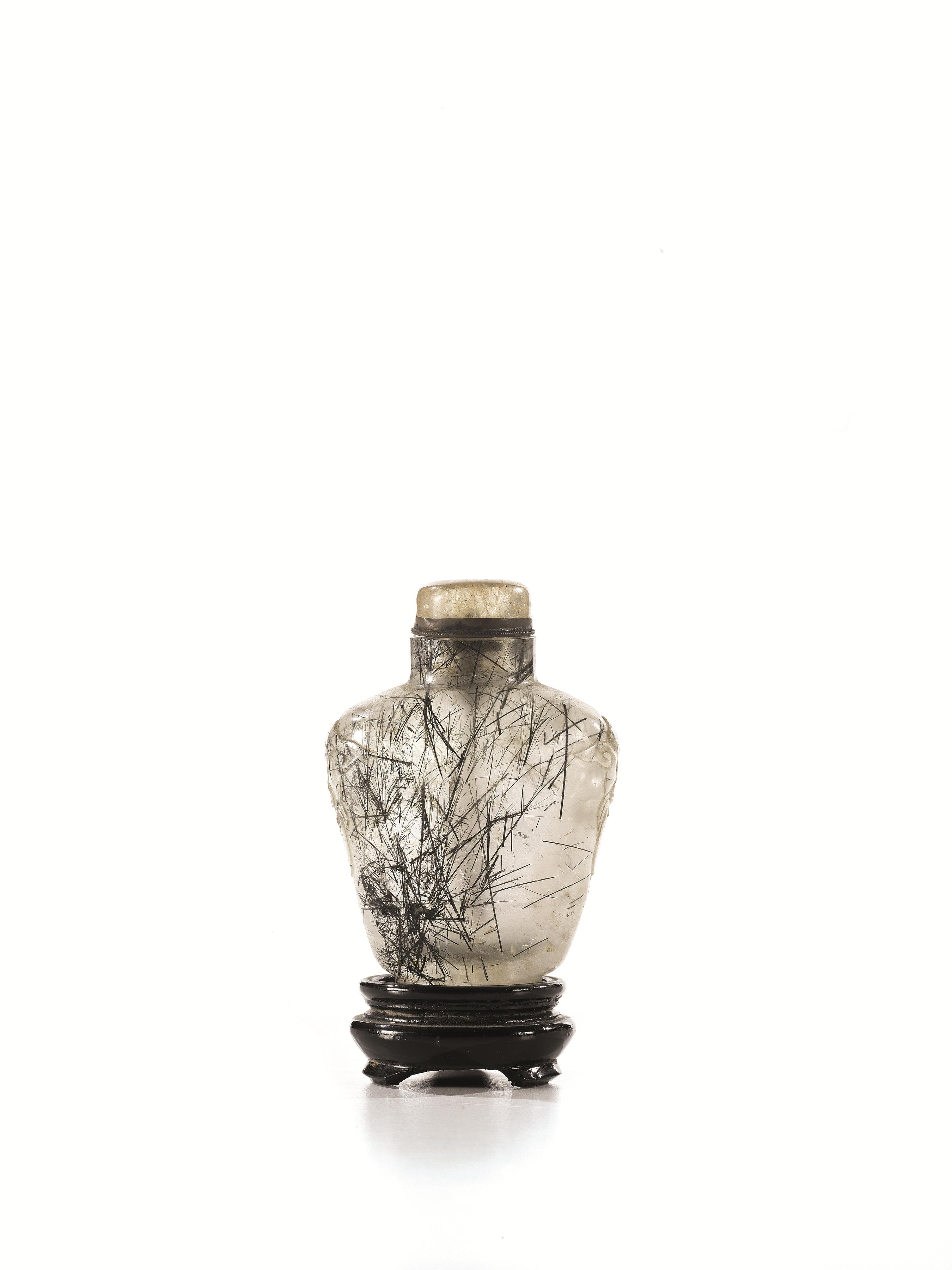 A hair rock crystal snuff bottle, China, Qing dynasty, 19th century