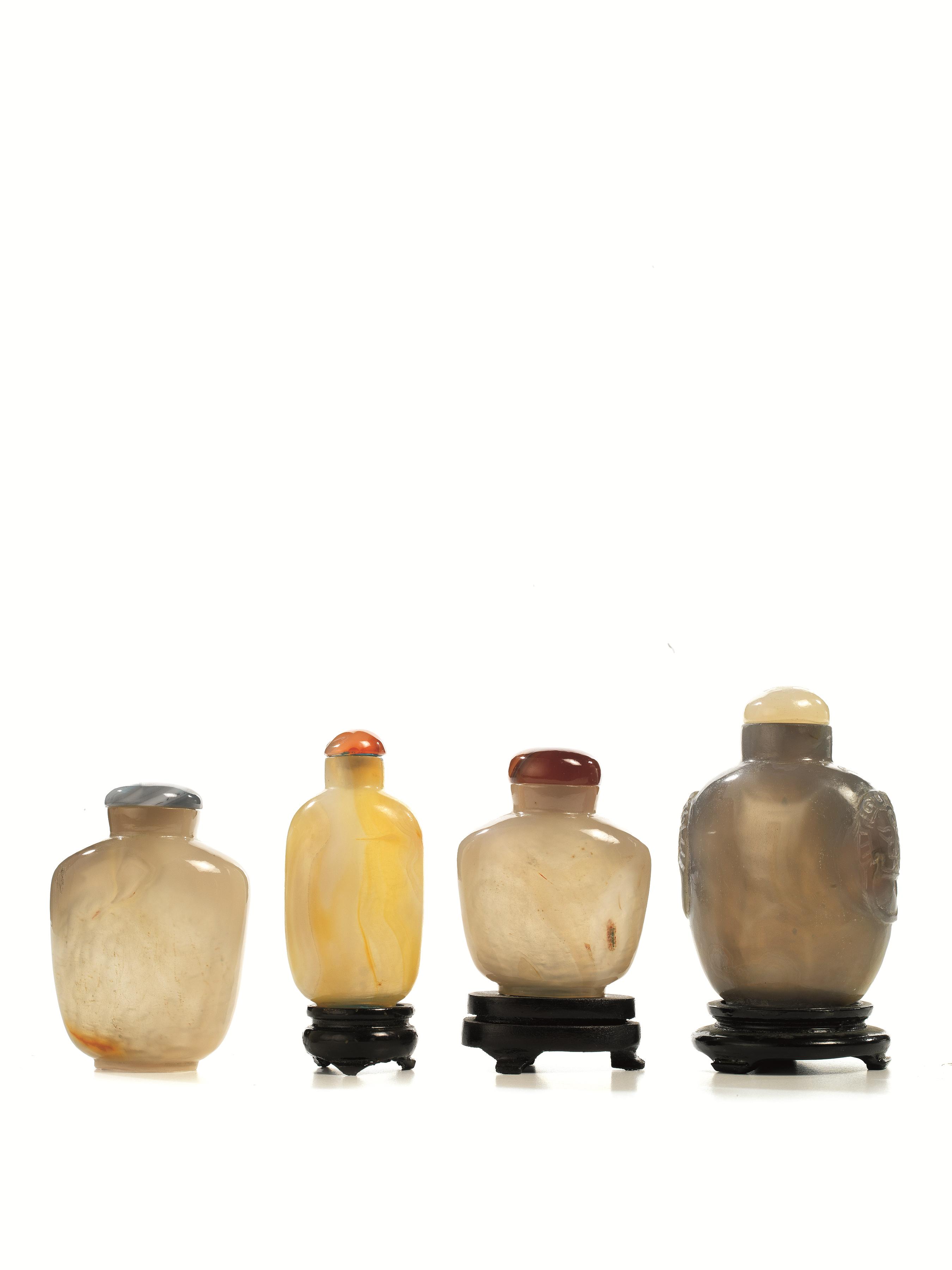 DUE SNUFF BOTTLE, CINA, SEC. XIX in agata, una alt. cm 6,5, e l'altra con le...