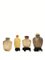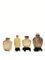 in agata, una alt. cm 6,5, e l'altra con le anse decorate con motivo di taotie, alt. cm 9, poggianti su basi in legno