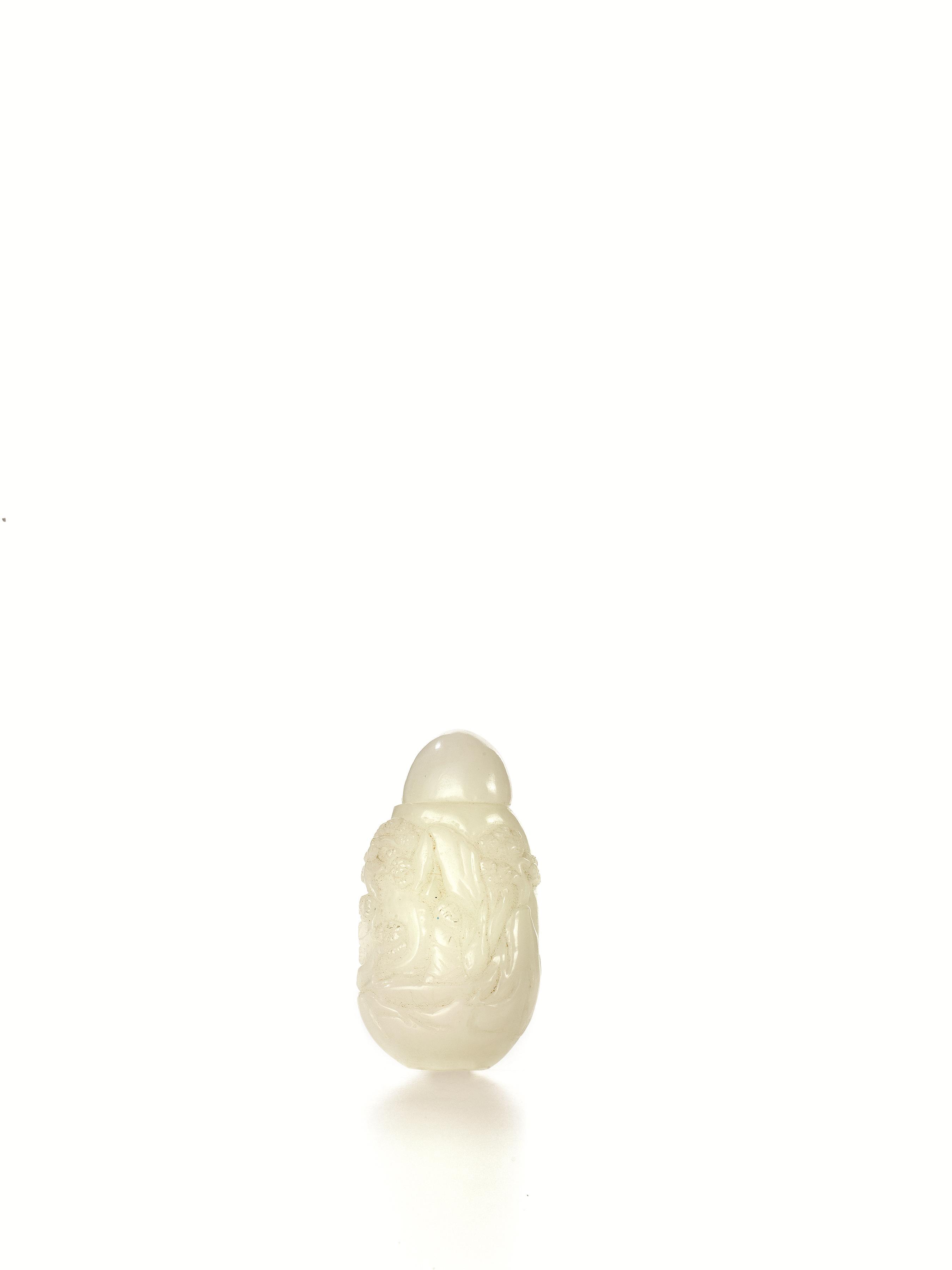 A white jade snuff bottle, China, Qing dynasty, 19th century