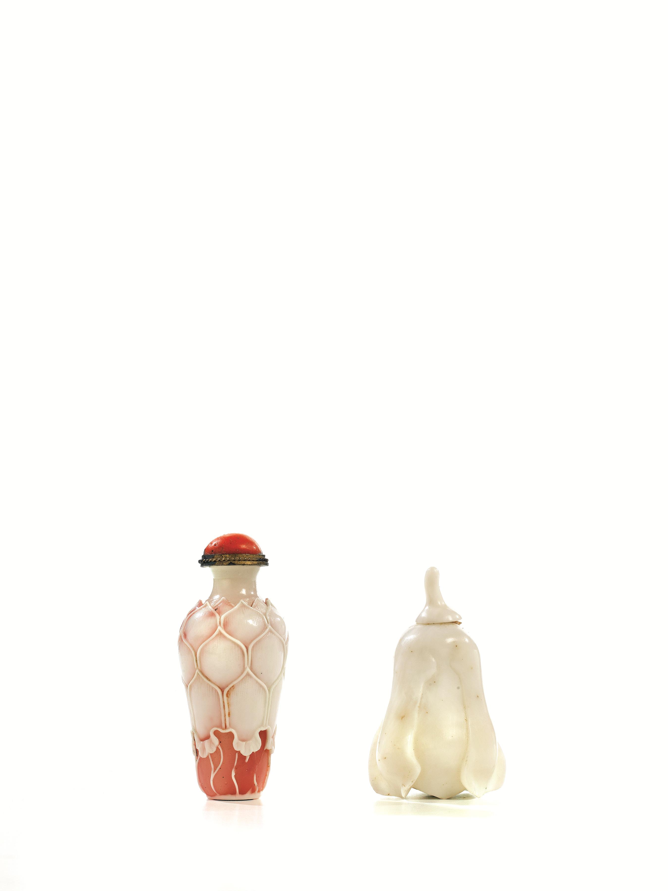 SNUFF BOTTLE, CINA, SEC. XIX in vetro bianco, modellata nella forma di...
