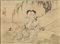 su seta riportata su carta , raffigurante due figure femminili sedute su una panchina in un giardino , cm 29x39