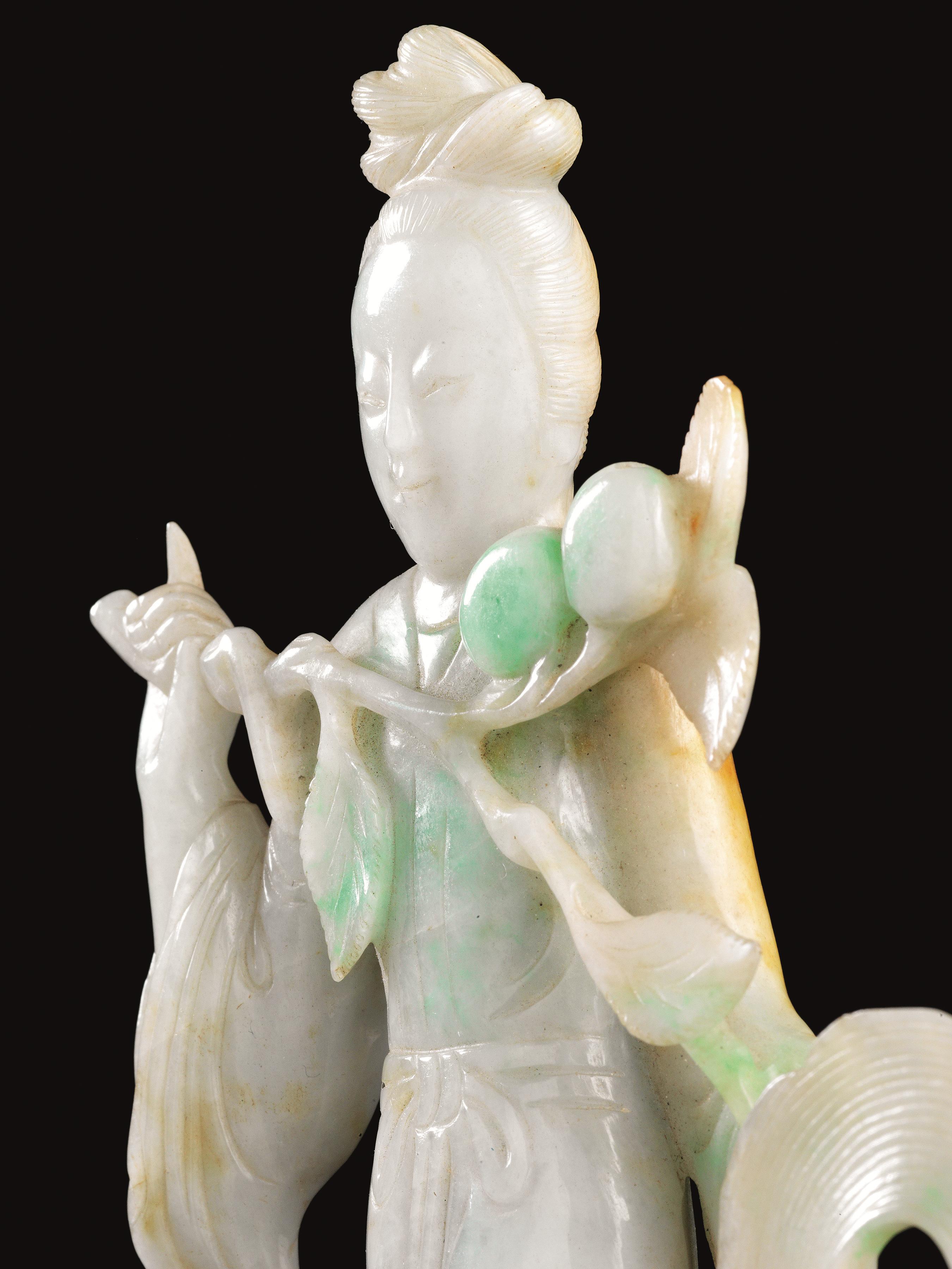 in giadeite verde mela, modellata nella forma di una figura femminile con