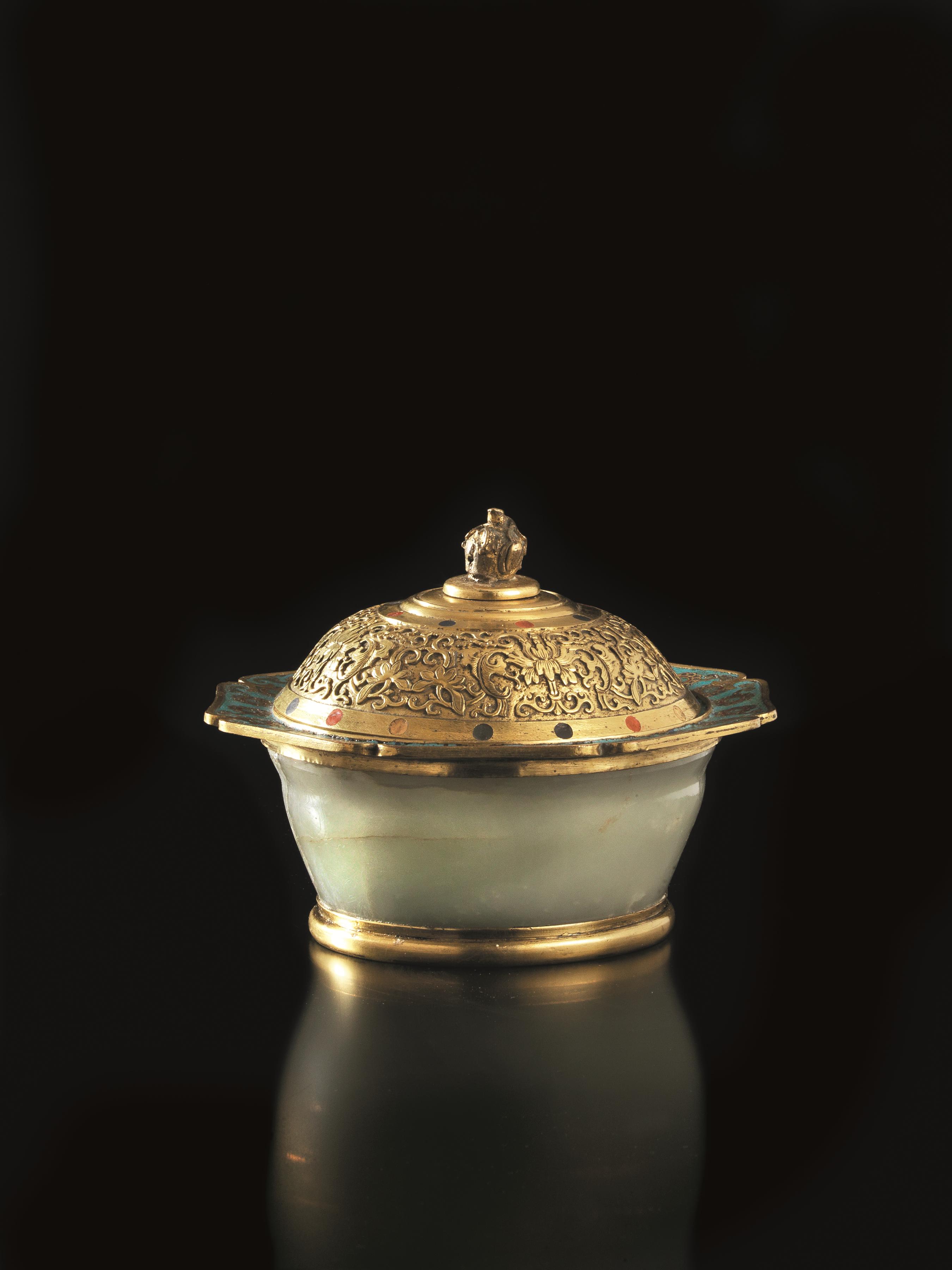 finemente cesellato con fior di loto, il corpo ricoperto di giada nefrite,