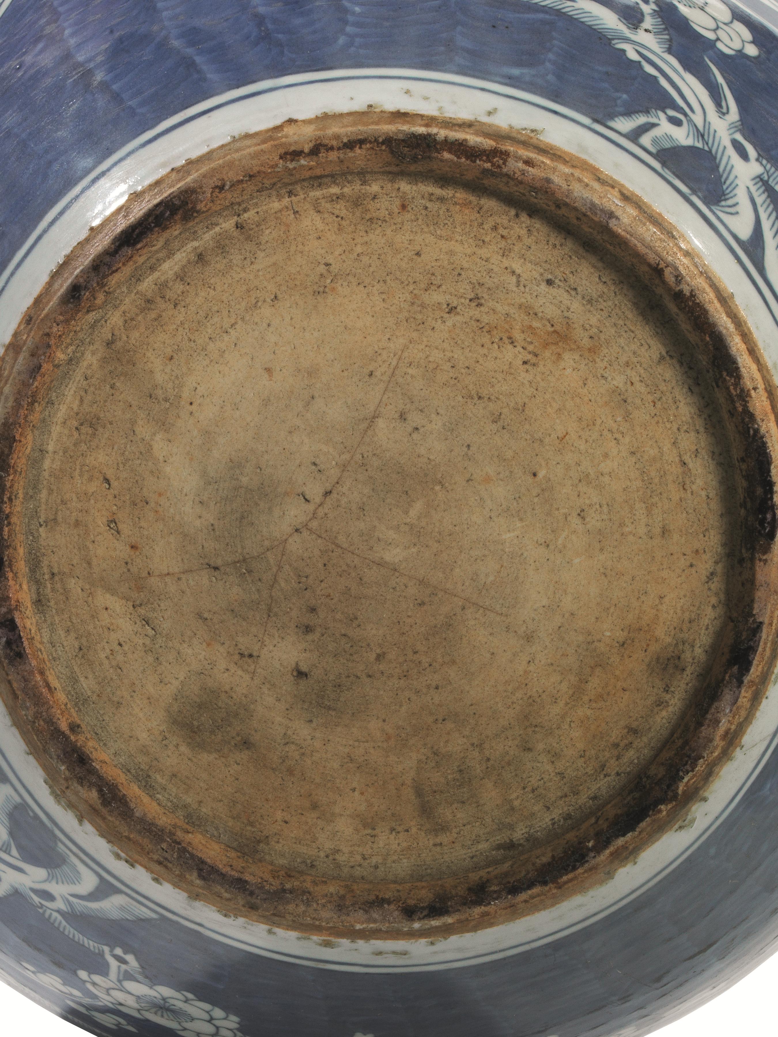 A "prunus" blue and white porcelain cachepot, China, 18th century