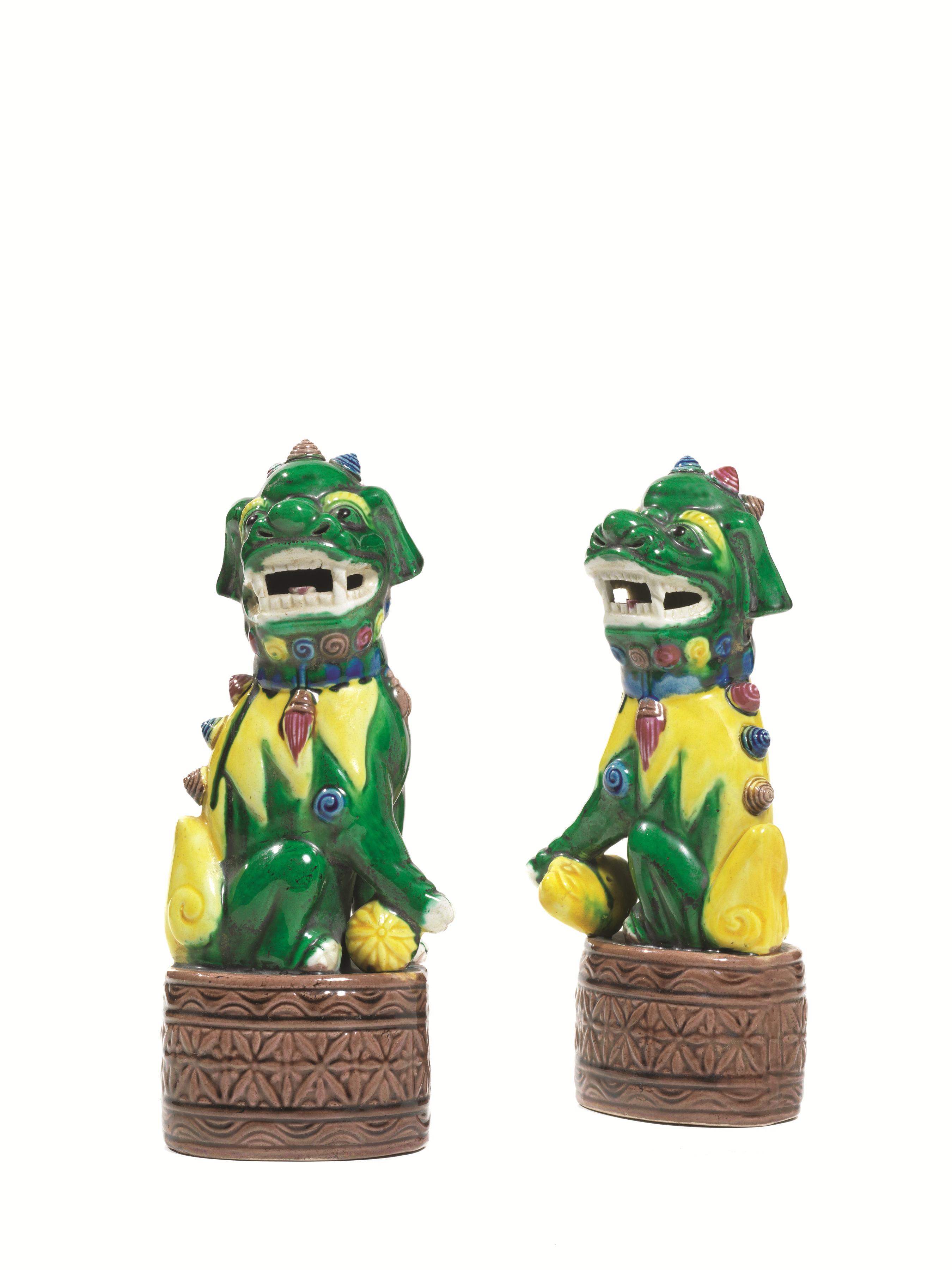 A pair of polychrome porcelain Pho dogs, China, 20th century