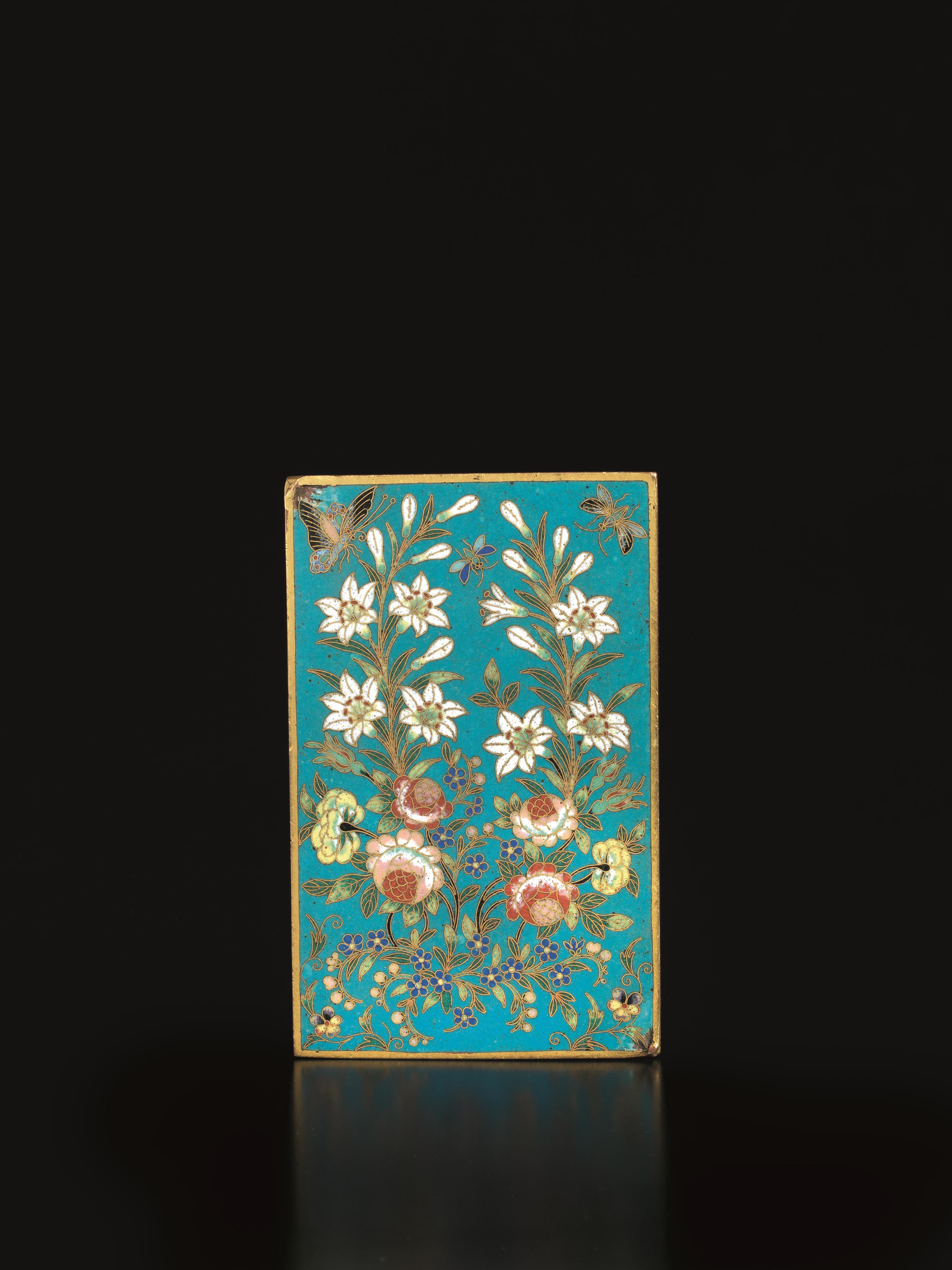 A bronze plaque with flowers and butterflies, China, Qing dynasty, Qianlong period