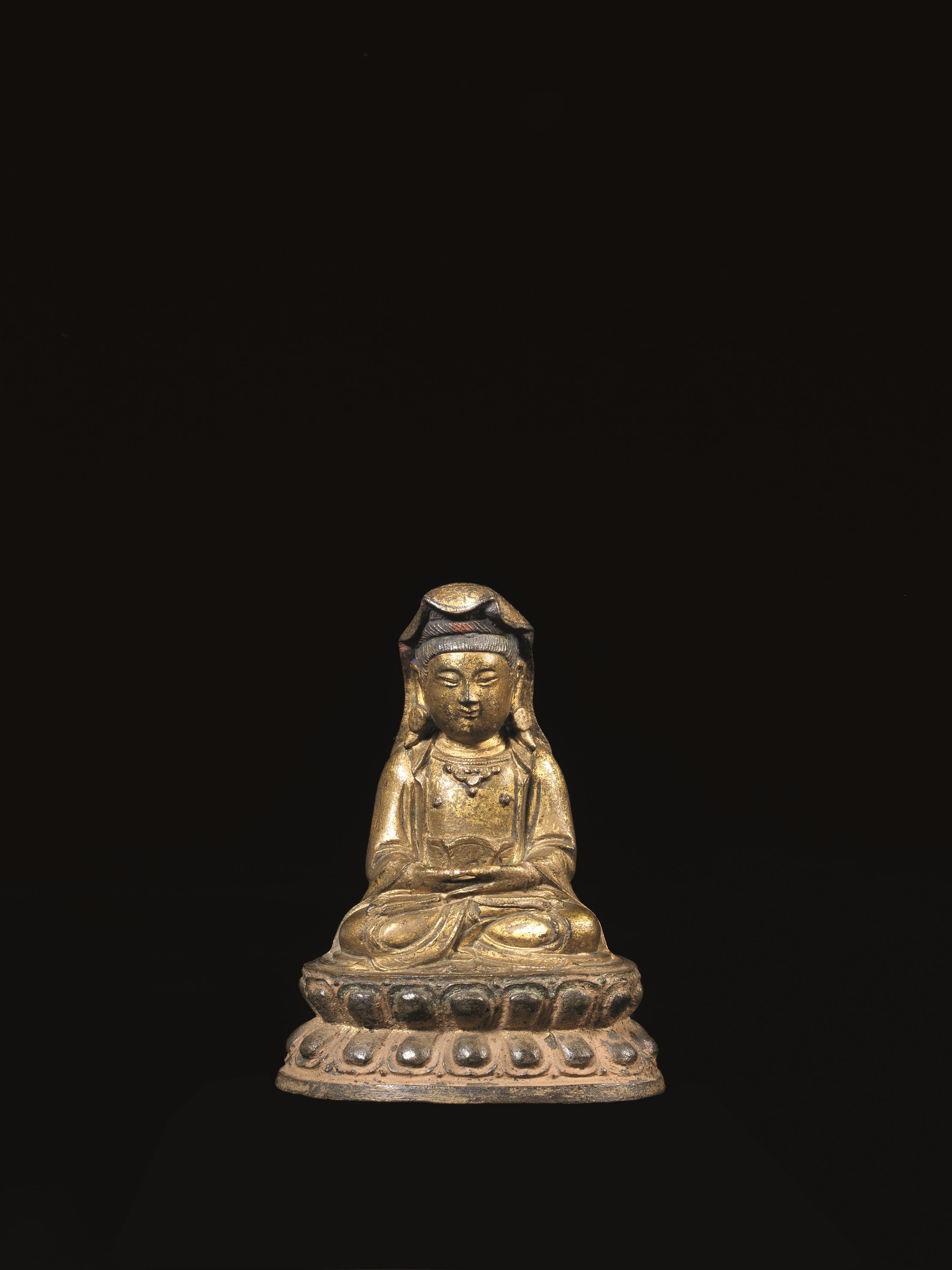 Lot 263 | GUANYIN CINO TIBETANA SEC. XVIII in bronzo dorato alt. cm 11 A Cino Tibetan...