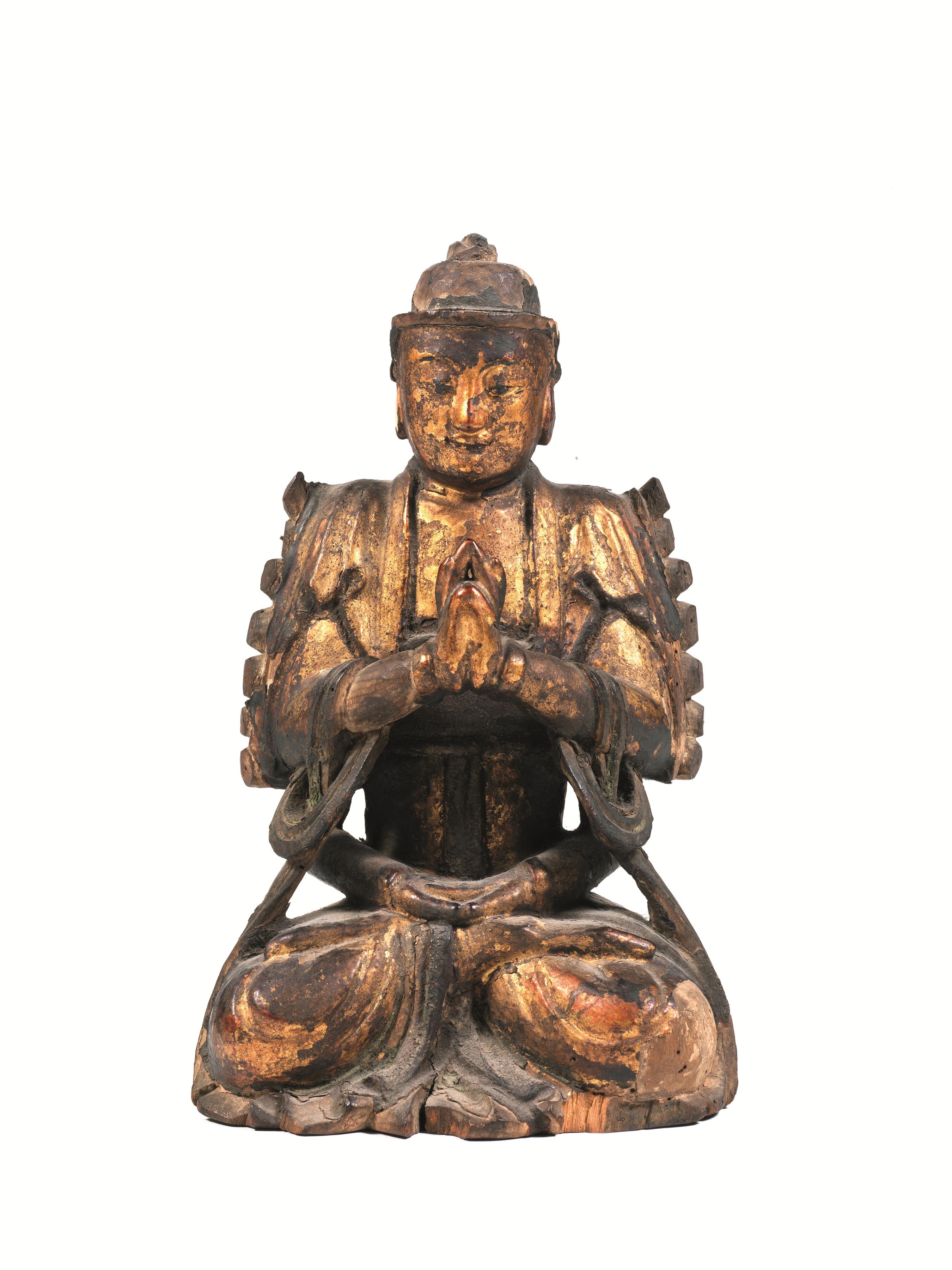 SCULTURA, CINA, SEC. XVII in legno laccato e dorato, raffigurante Buddha,...
