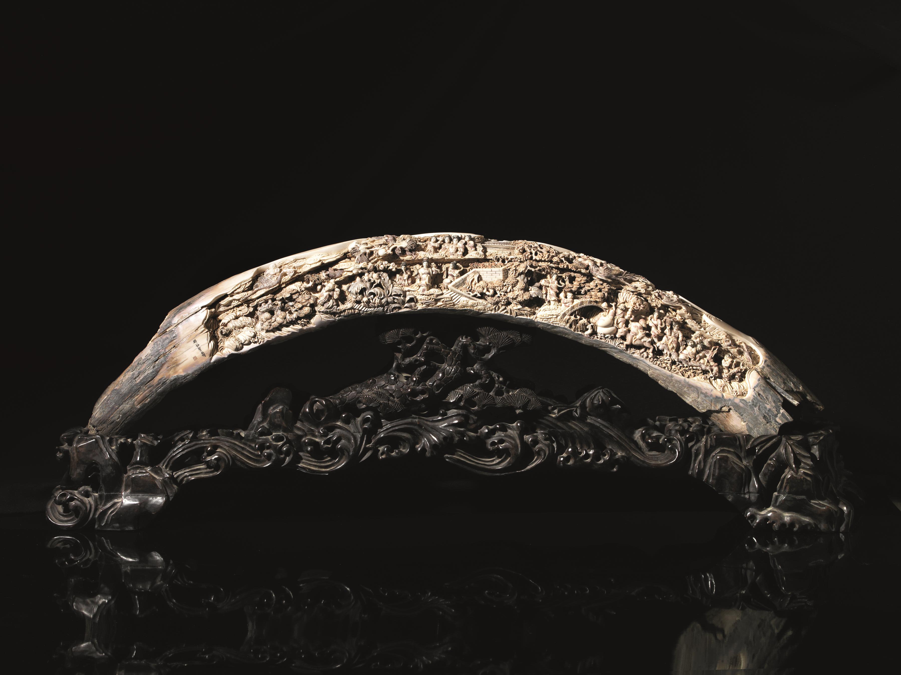 ZANNA DI MAMMUT CINA SECC XIX-XX avorio fossile, intagliata con personaggi,...