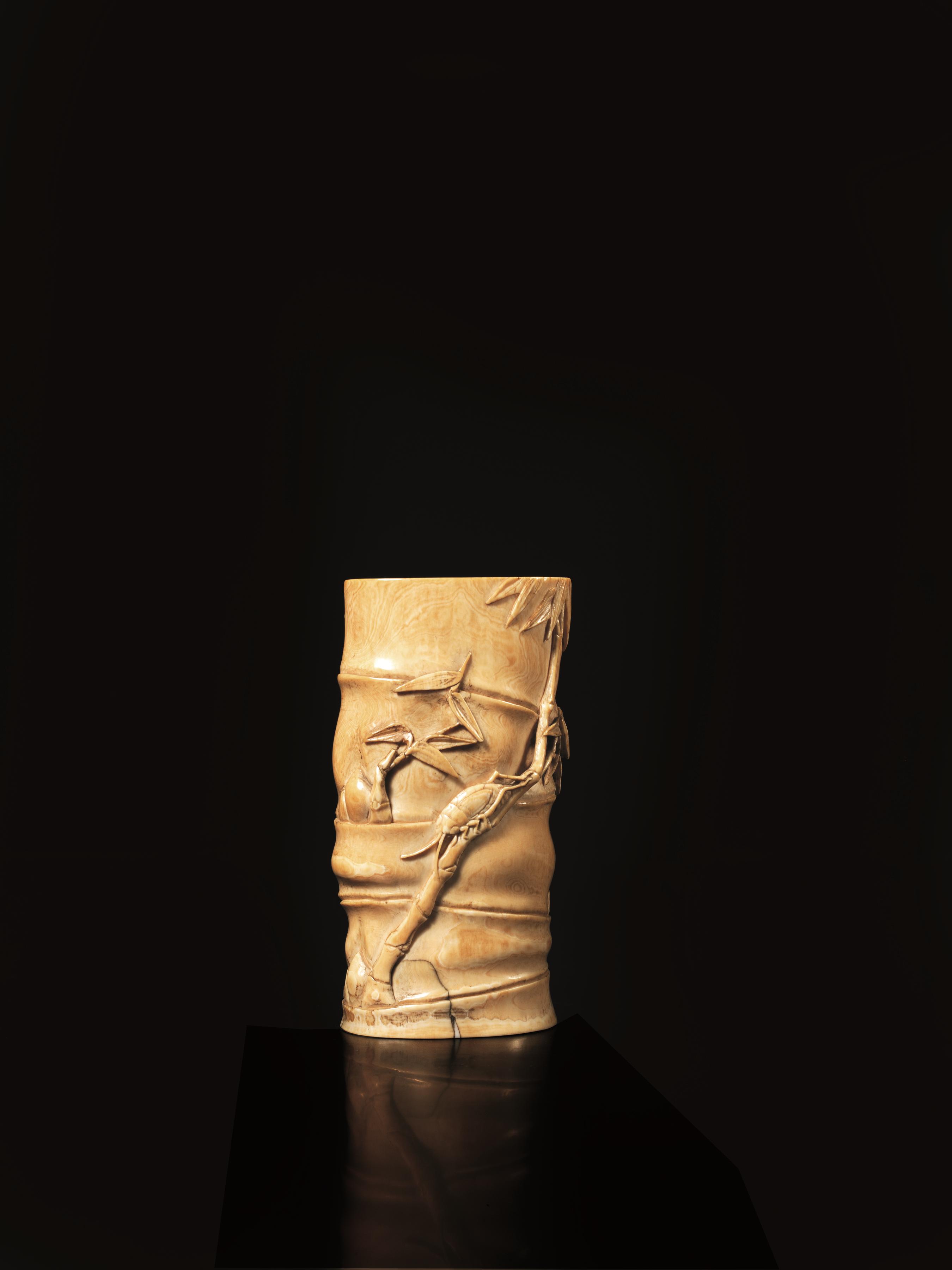 Lot 314 | PORTA PENNELLI, CINA, SEC. XIX in avorio nella forma di tronco di bamboo...