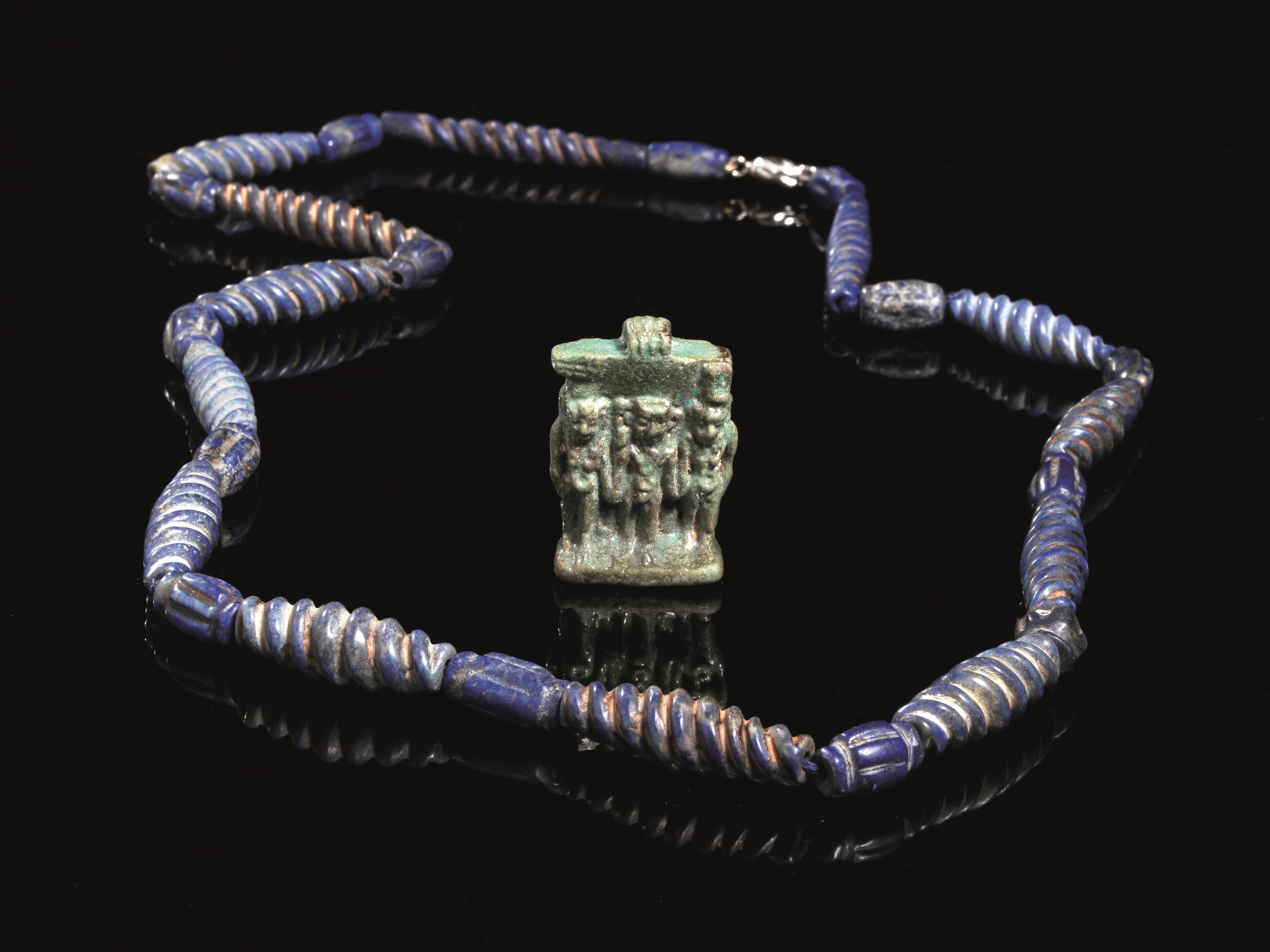 Lot 4 | AMULETO IN FAIENCE E COLLANA BATTRIANA Materia e tecnica: faience egizia...