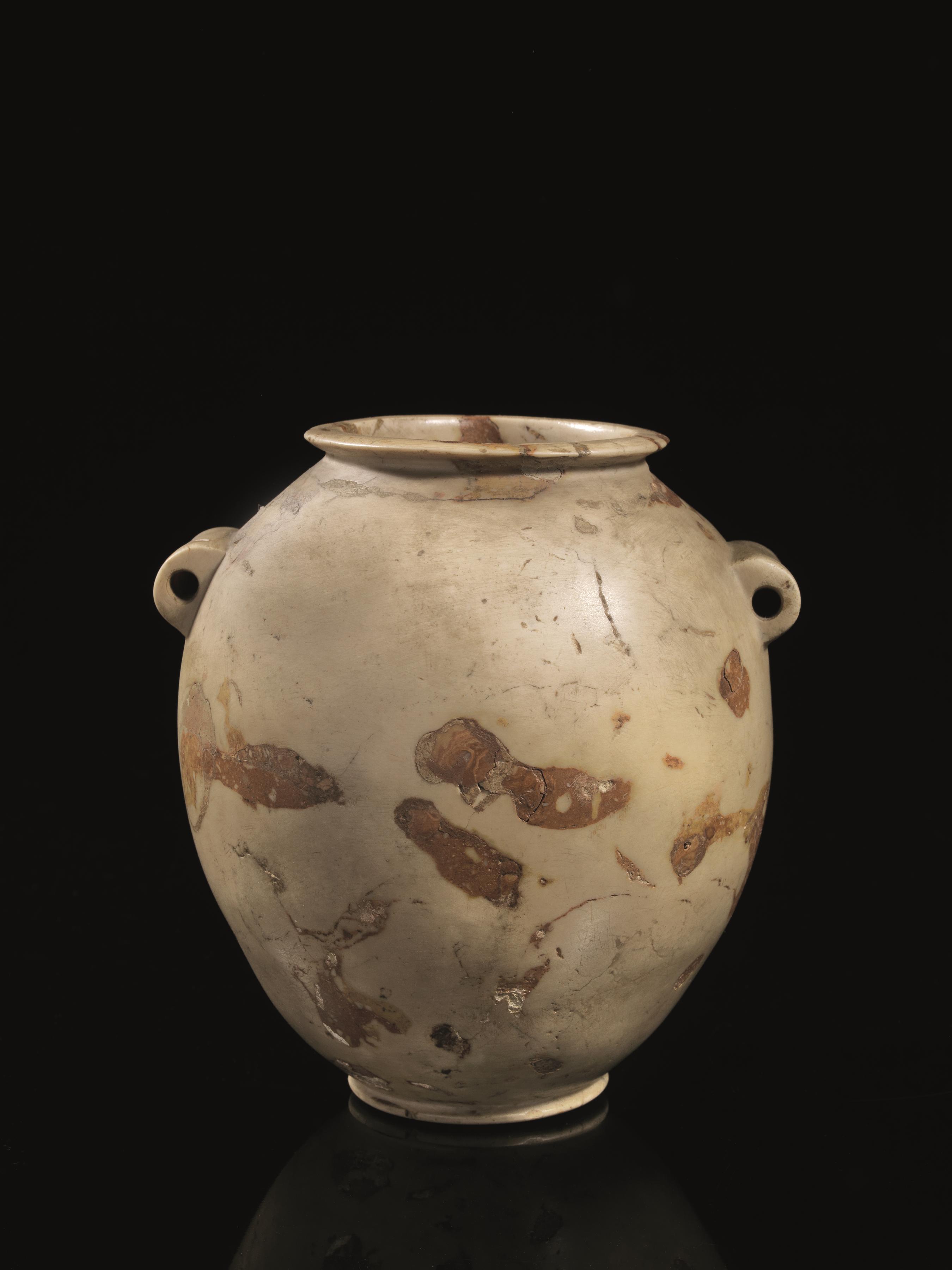 OLLA IN MARMO Materia e tecnica: in breccia di marmo avorio e rosso Labbro...
