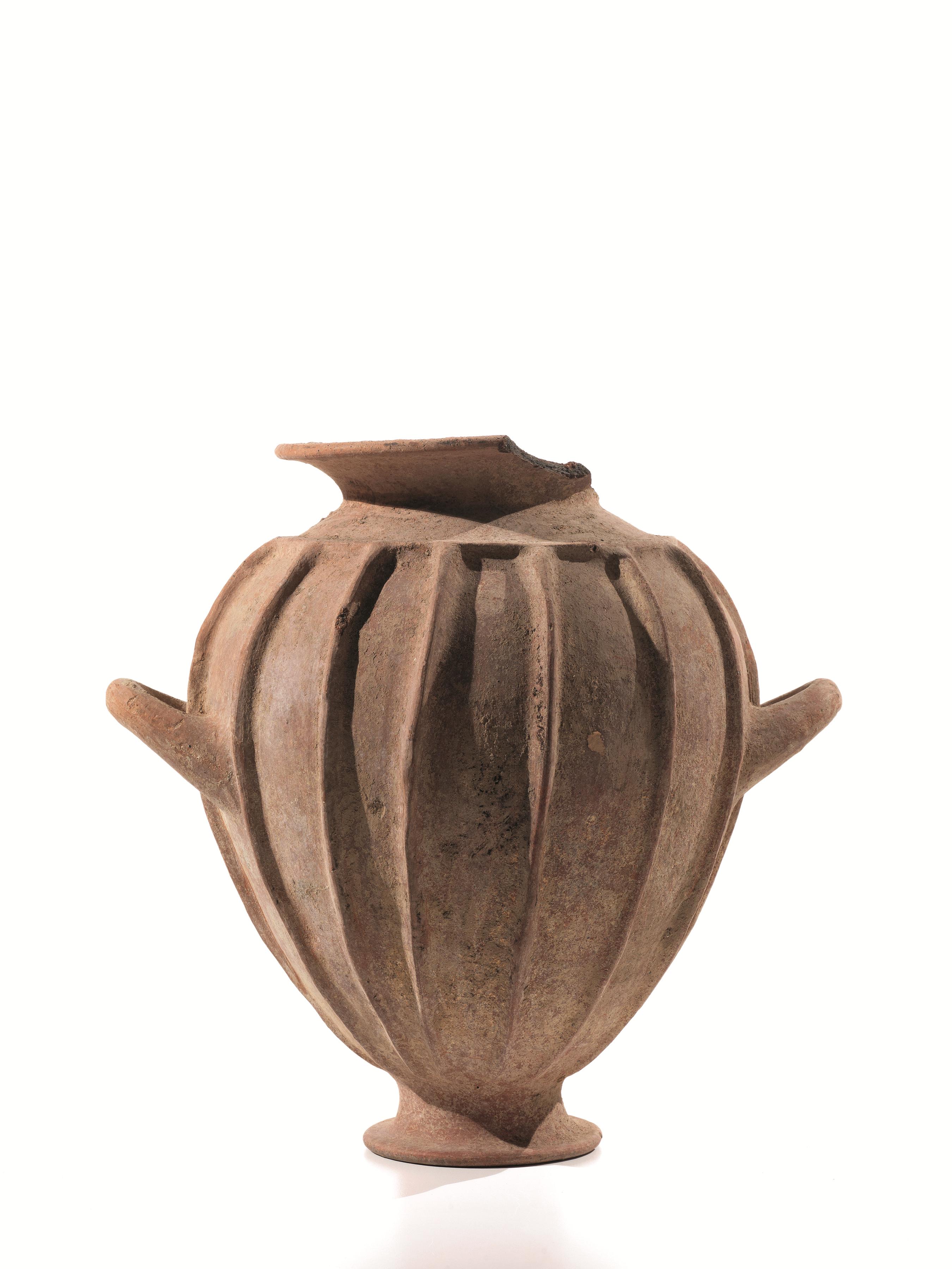 OLLA COSTOLATA BIANSATA Materia e tecnica: impasto rosato, ingubbiatura...