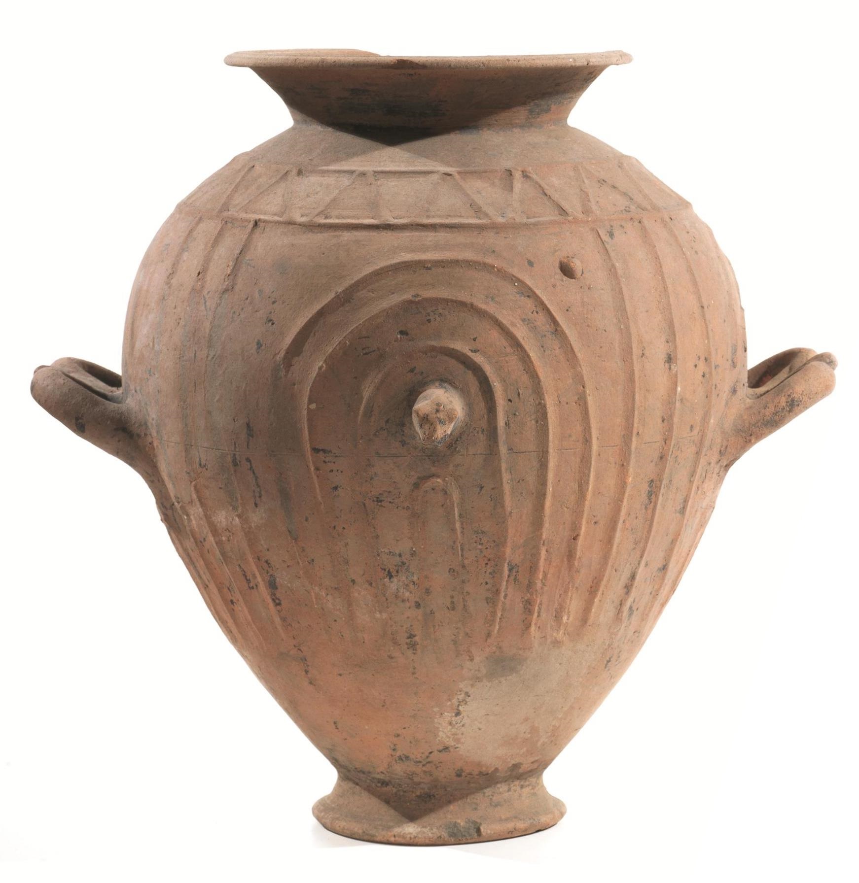 Grande olla costolata biansata Materia e tecnica: impasto rosato,...