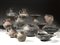 Materia e tecnica: impasto buccheroide bruno e camoscio, lucidato a stecca, decorazione a impressione, modellati a tornio lento