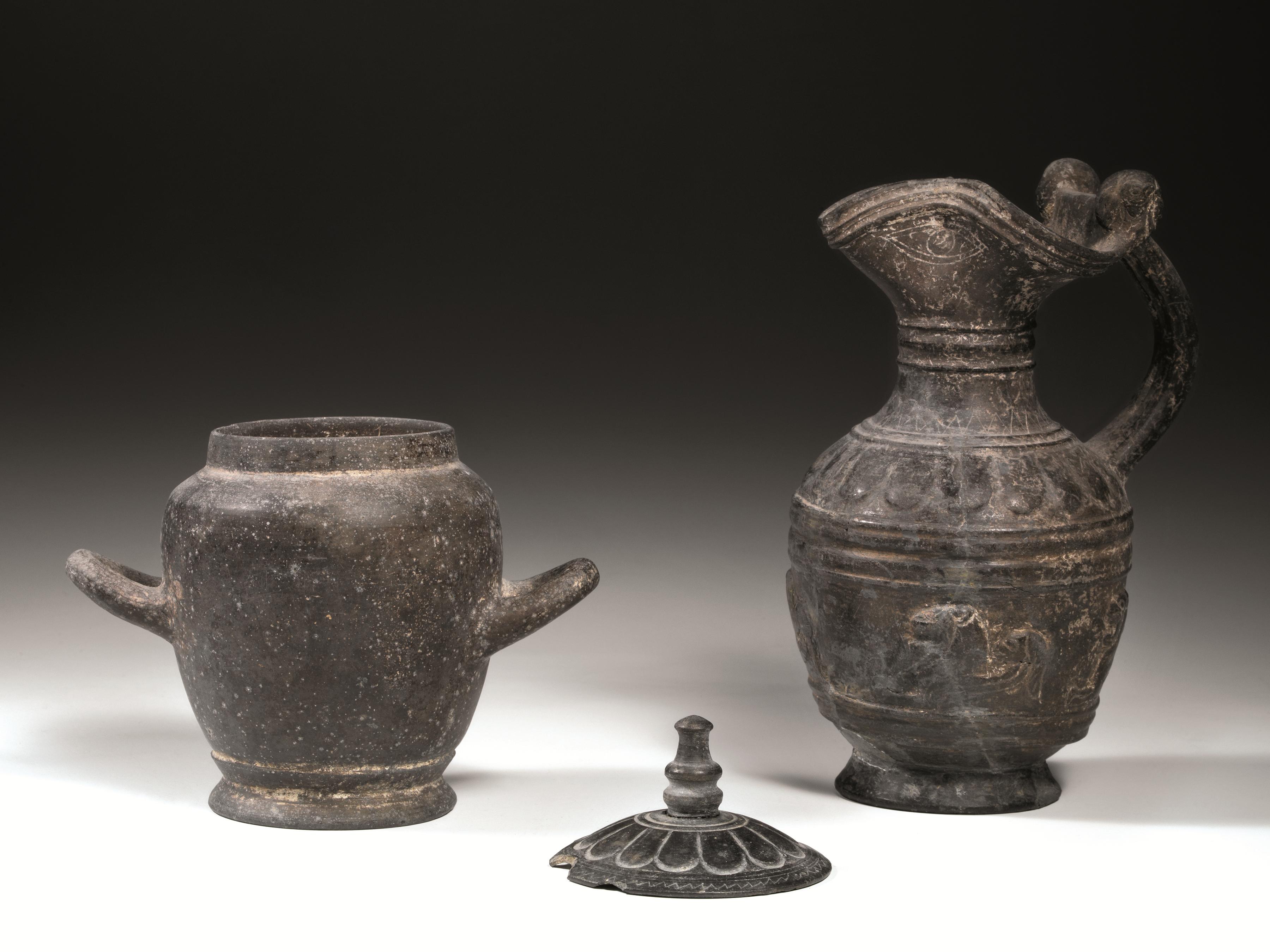 OINOCHOE, OLLETTA E COPERCHIO IN BUCCHERO Materia e tecnica: bucchero nero...