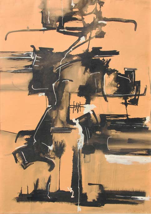 Gianni BERTINI Pisa, 1922 - Normandia, 2010 Senza titolo, anni '50 tecnica mista su carta intelata cm 74x53