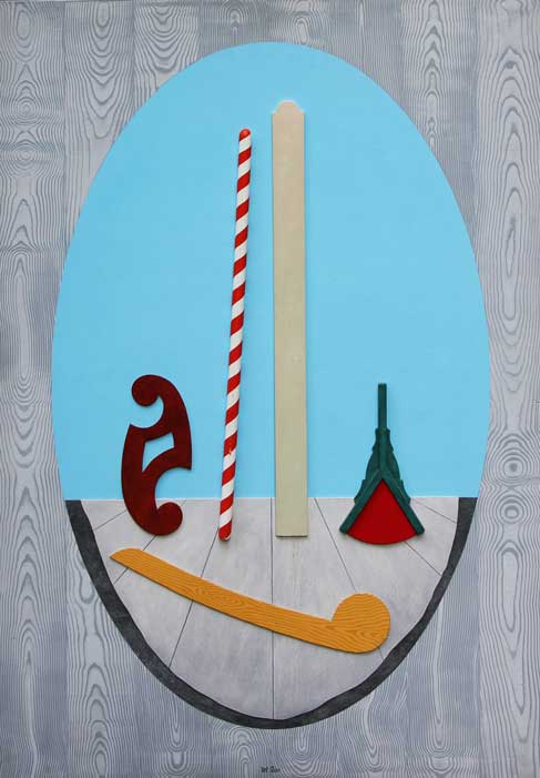 Lucio DEL PEZZO Napoli, 1933 Ovale collage, acrilico, smalto su legno cm 100x70 Autentica dell’artista su fotografia