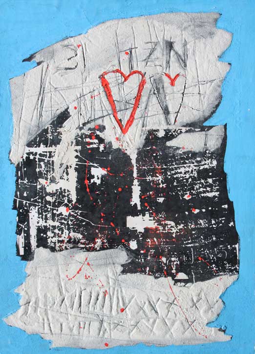 Giorgio CELIBERTI Udine, 1929 Lettera ai bambini di Terezin, 1989 tecnica mista su tavola cm 100x70 Autentica dell’artista su fotografia