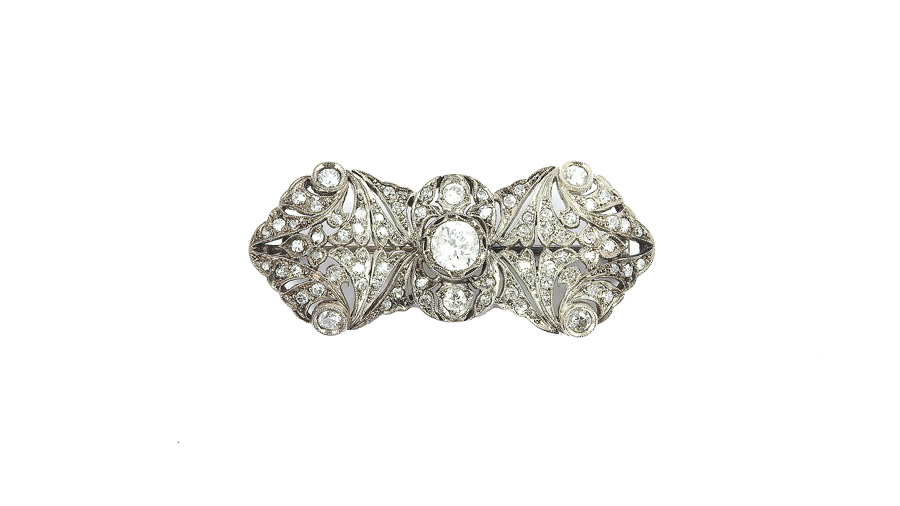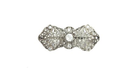 SPILLA IN ORO BIANCO E DIAMANTI TAGLIO VECCHIO inizio del XX secolo gr 7,60...