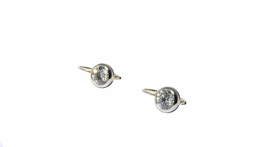 PAIO DI ORECCHINI IN ORO BIANCO E GIALLO A MONACHELLA ciascuno con diamante centrale taglio brillante rotondo ct 1,70 ciascuno circa WHITE AND YELLOW GOLD EAR CLIPS WITH TWO ROUND BRILLIANT CUT DIAMONDS APPROX. 1,70 CT EACH