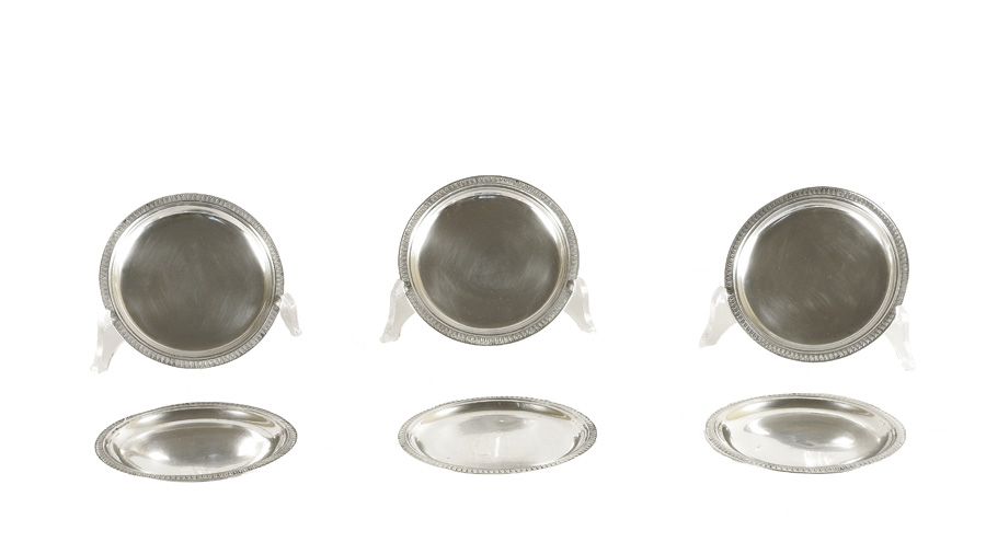 Lot 441 | SERIE DI SEI PIATTINI DA PANE IN ARGENTO bordi sbalzati con motivi a palmette...