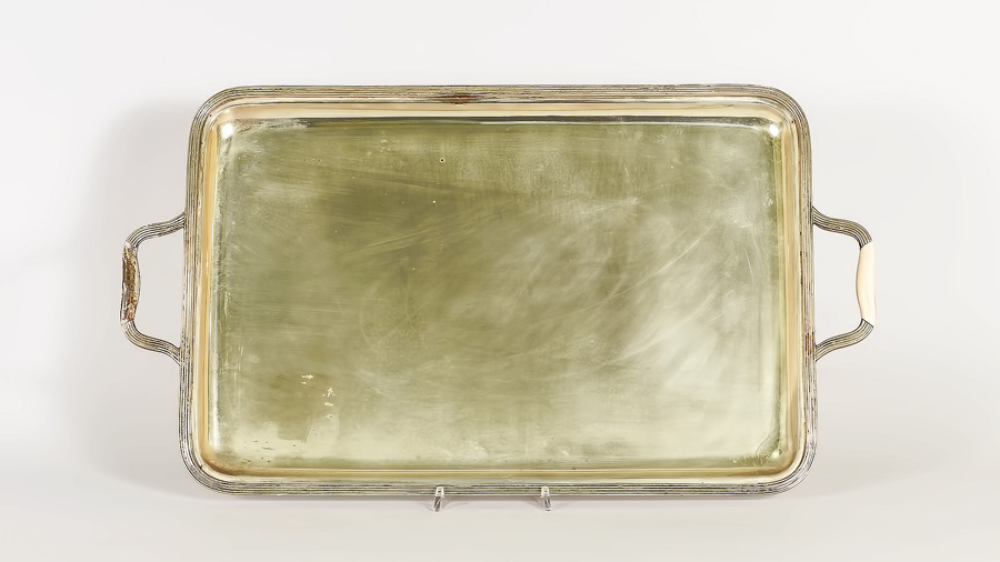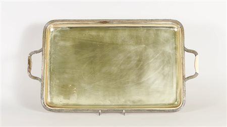 GUANTIERA IN ARGENTO manici con placchette in avorio, una plachetta mancante gr 2063 cm 57x32 SILVER TRAY