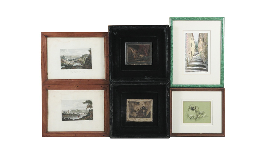 LOTTO DI STAMPE E INCISIONI tra cui due vedute di Firenze, un acquerello raffigurante uno scorcio dell'Elba e coppia di incisioni su lastre di metallo, in cornice (6) PRINTS AND ENGRAVINGS LOT