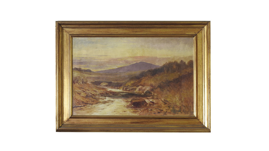 PAESAGGIO FLUVIALE olio su tela, in cornice cm 49x75 RIVER LANDSCAPE, OIL ON CANVAS