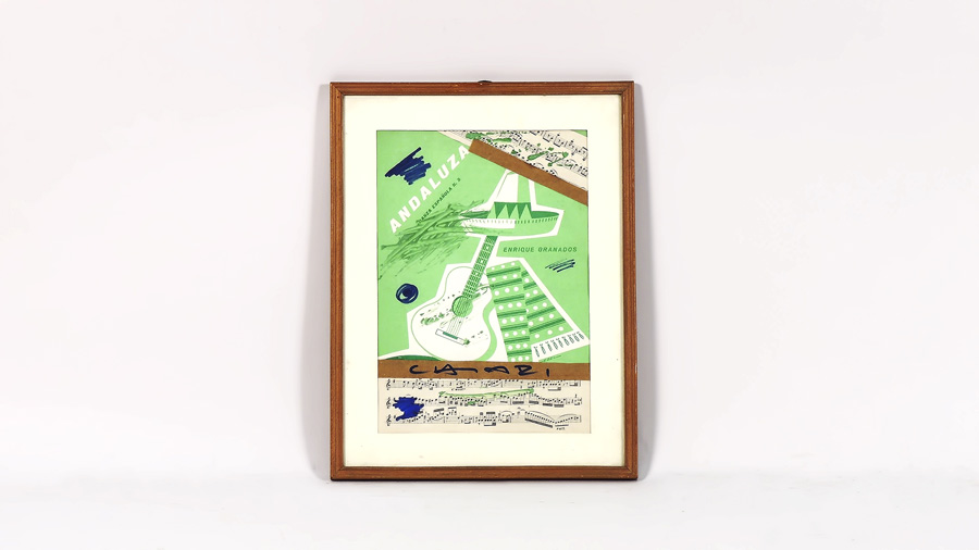 GIUSEPPE CHIARI (1926-2007) Composizione con spartito musicale recnica mista e collage, firmato, in cornice cm 32x22 Corredato di autentica dell'autore su fotografia COMPOSITION WITH SHEET MUSIC, MIXED MEDIA AND COLLAGE, WITH AUTHOR'S AUTHENTICATION ON PHOTO