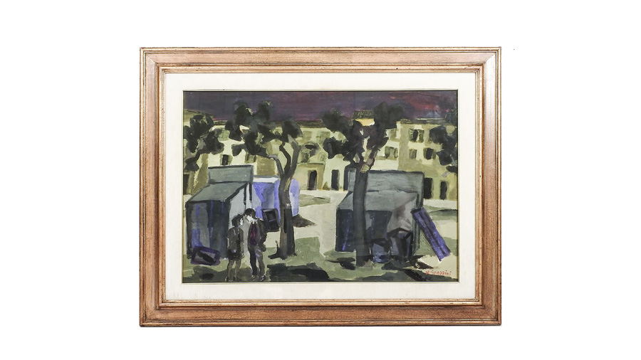 Lot 549 | RENZO GRAZZINI (1912-1990) Scorcio di paese con personaggi olio su tavoletta,...
