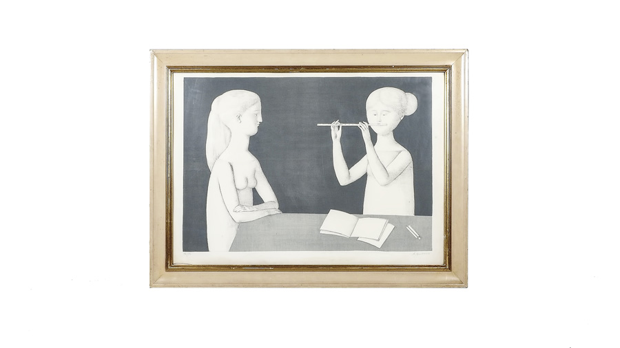 ANTONIO BUENO (1918-1984) Lezione di musica litografia, es 92/150, firmata, in cornice cm 43,5x62,5 MUSIC LESSON, LITHOGRAPH