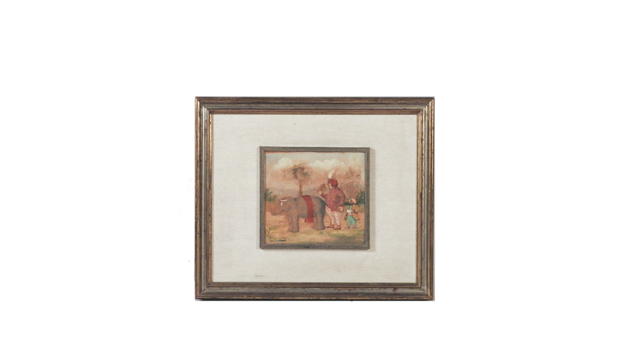 NINO TIRINNANZI (1923-2002) Paesaggio indiano con personaggi tecnica mista su cartoncino, firmato, in cornice cm 20,5x22 INDAN LANDSCAPE WITH FIGURES, MIXED MEDIA ON PAPER