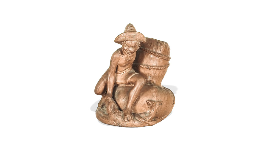 SCUOLA NAPOLETANA DELL'INIZIO DEL XX SECOLO Gruppo in terracotta raffigurante Pescatorello con cesta h cm 20 NEAPOLITAN SCHOOL OF EARLY 20TH CENTURY, TERRACOTTA FIGURAL GROUP