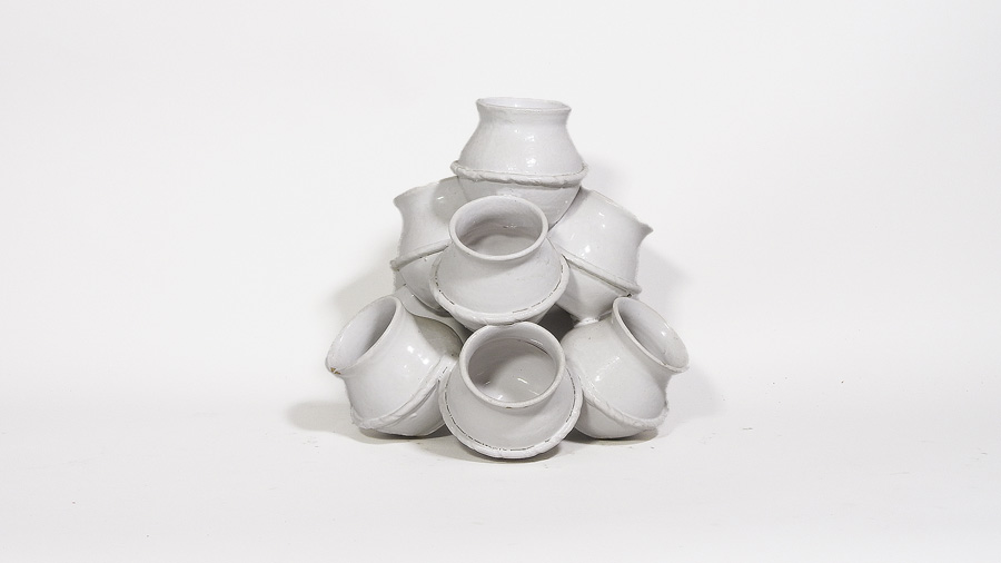 FIORIERA IN TERRACOTTA SMALTATA realizzata come una composizione di piccoli vasi, difetti h cm 26 GLAZED TERRACOTTA FLOWER VASE