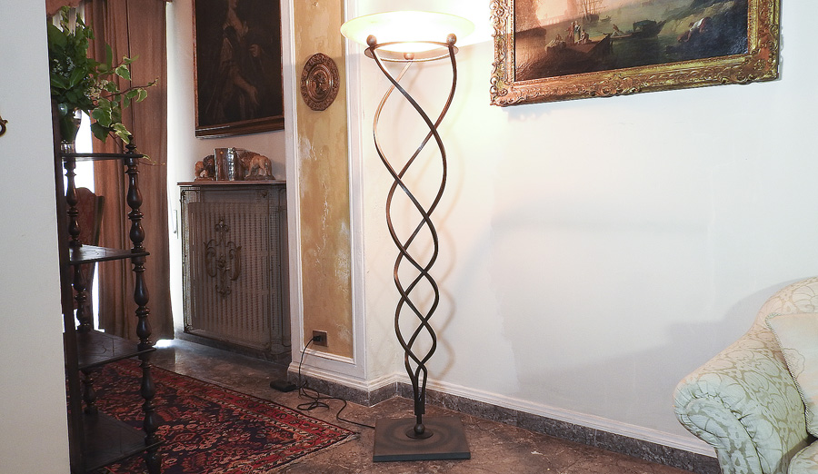 Lot 731 | PIANTANA IN FERRO BATTUTO sostegno elicoidale, coppa in vetro h cm 177...