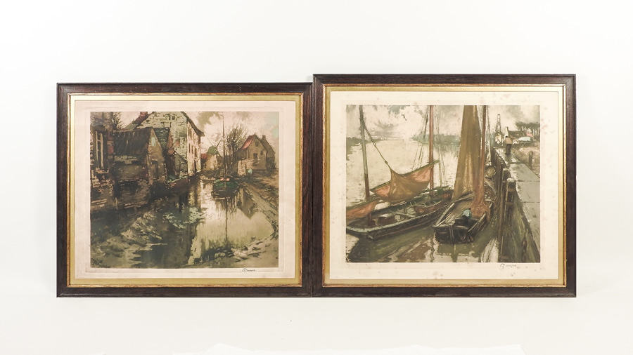 Lot 752 | BARCHE AL MOLO E SCORCIO DI PAESE coppia di acquaforti-acquatinte, in...