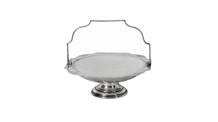 CESTINO-ALZATA IN SHEFFIELD Mappin&Webb coppa sagomata sbalzata con volute, manico sagomato h cm 8 SHEFFIELD PEDESTAL BASKET