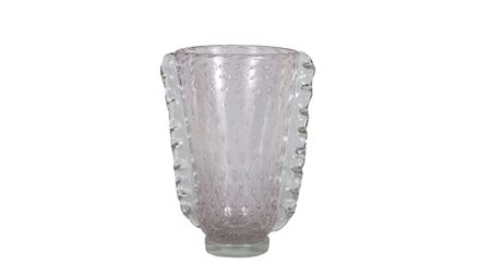 VASO IN VETRO SOFFIATO INCOLORE CON INCLUSIONE DI BOLLE h cm 31 UNCOLOURED BLOWN GLASS VASE