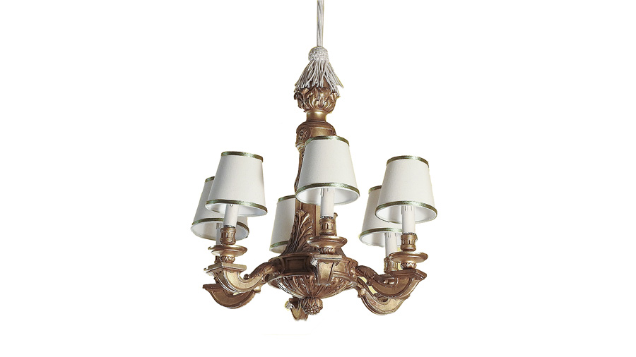PICCOLO LAMPADARIO IN LEGNO INTAGLIATO E DORATO realizzato in stile...