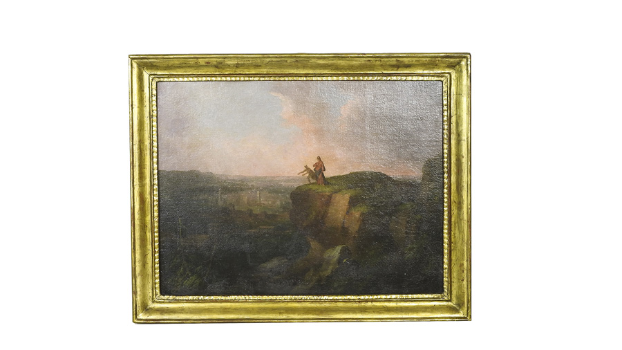 SCUOLA ITALIANA DELLA FINE DEL XVIII/INIZIO DEL XIX SECOLO Le tentazioni di Gesù olio su tela, in cornice difetti cm 45,5x59,5 ITALIAN SCHOOL OF LATE 18TH/BEGINNING 19TH CENTURY, TEMPTATIONS OF CHRIST, OIL ON CANVAS