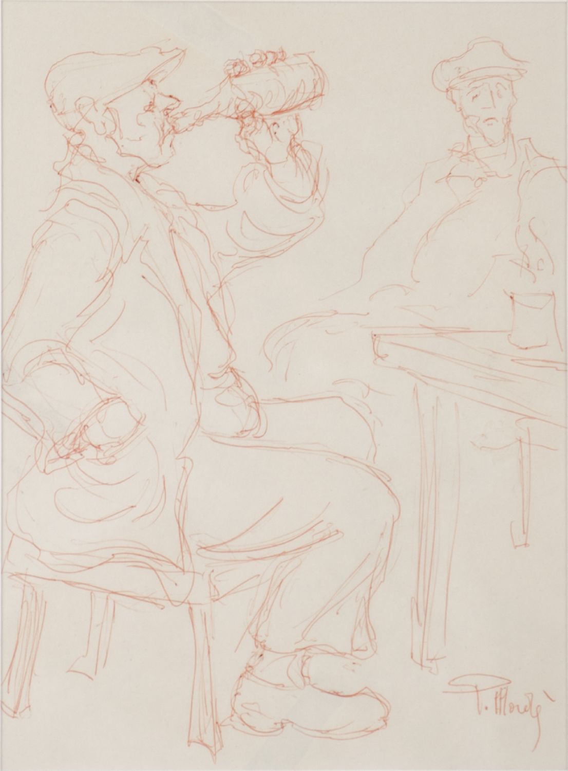 PIPPO MADE' (Palermo 1936) DISEGNO su carta "personaggi alla locanda", firmato in basso a destra. Misure: cm 20 x 27