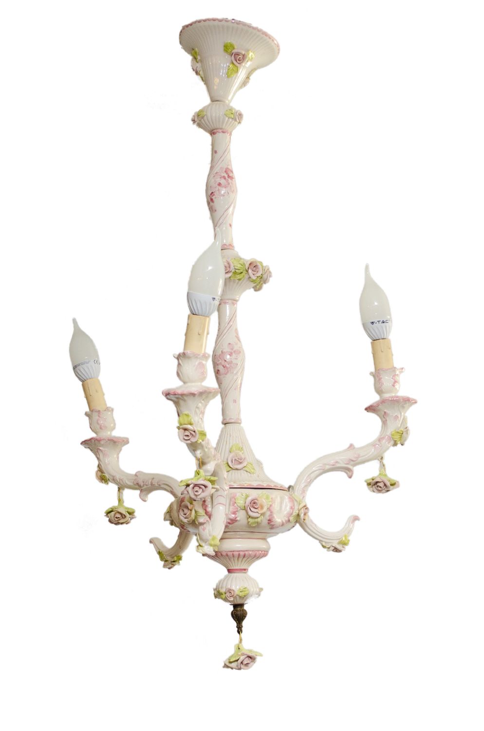 LAMPADARIO a tre luci in ceramica smaltata e decorata. Italia anni '60...